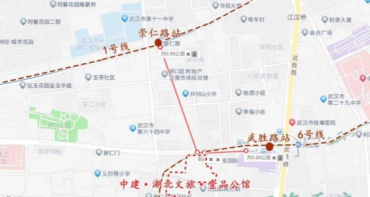 中建·湖北文旅·壹品公馆位于中山大道与崇仁路交汇处以东,楼市属于武胜路汉正街板块,行政划分属于硚口区,距离内环线约300多米,环线位置属于内环边。