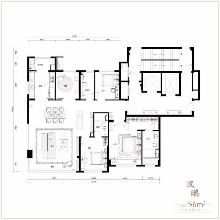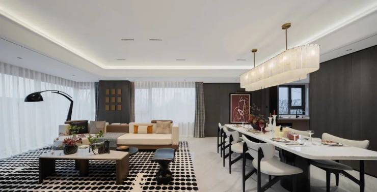 事实上,这款四室两厅三卫的大平层,不仅采光面多到离谱,整体尺度也彰显了东方大宅的气度。