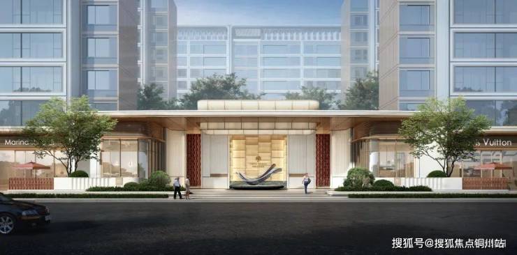 社区门厅是小区的颜值担当,整个中欧金茂锦棠的社区大门宽约32米,高约6.6米,融合了中轴对称和层层递进的东方哲学。