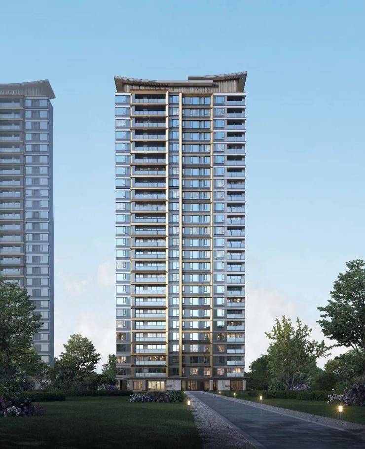 ②独创展翼飞檐:勾勒高低错落的非对称双重挑檐,犹如书法中的一撇一捺,寓意住在这边的业主事业步步高升,学业展翅飞翔;同时,飞檐与顶楼之间格栅相隔,最大程度保证了顶楼的采光