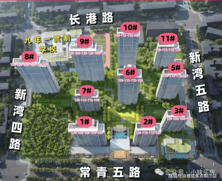 在最初的版本中,城投红树林流传出的效果图是包含有10-11栋住宅,主打104-139平户型。