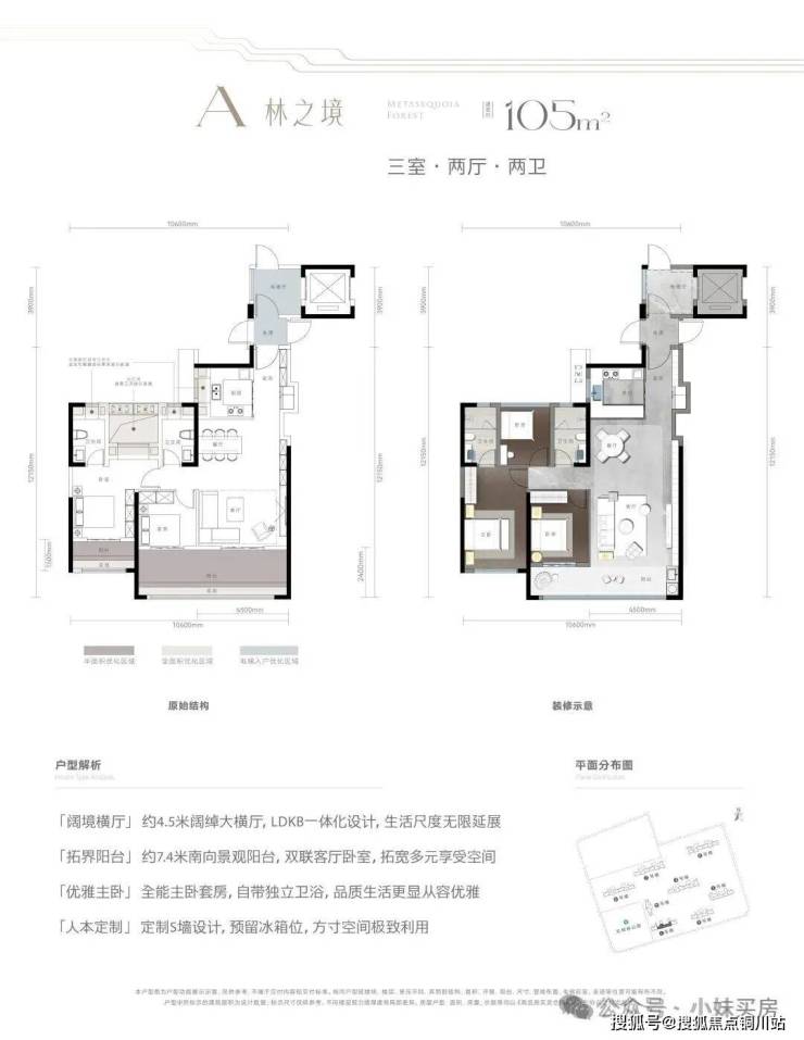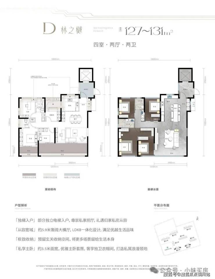 4、预计首推1、2号楼,建面约105-129平户型,超97%得房率(不含电梯前室)