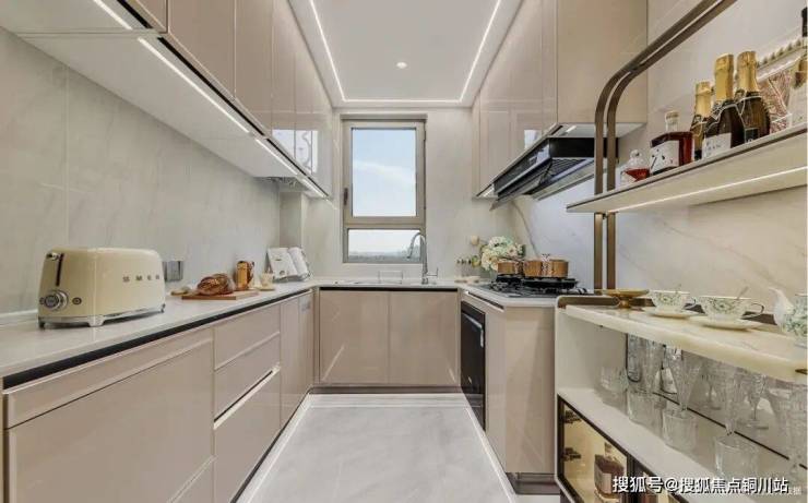 比如材质,台面进口石材、全屋多处岩板交付,触目所及皆是质感;