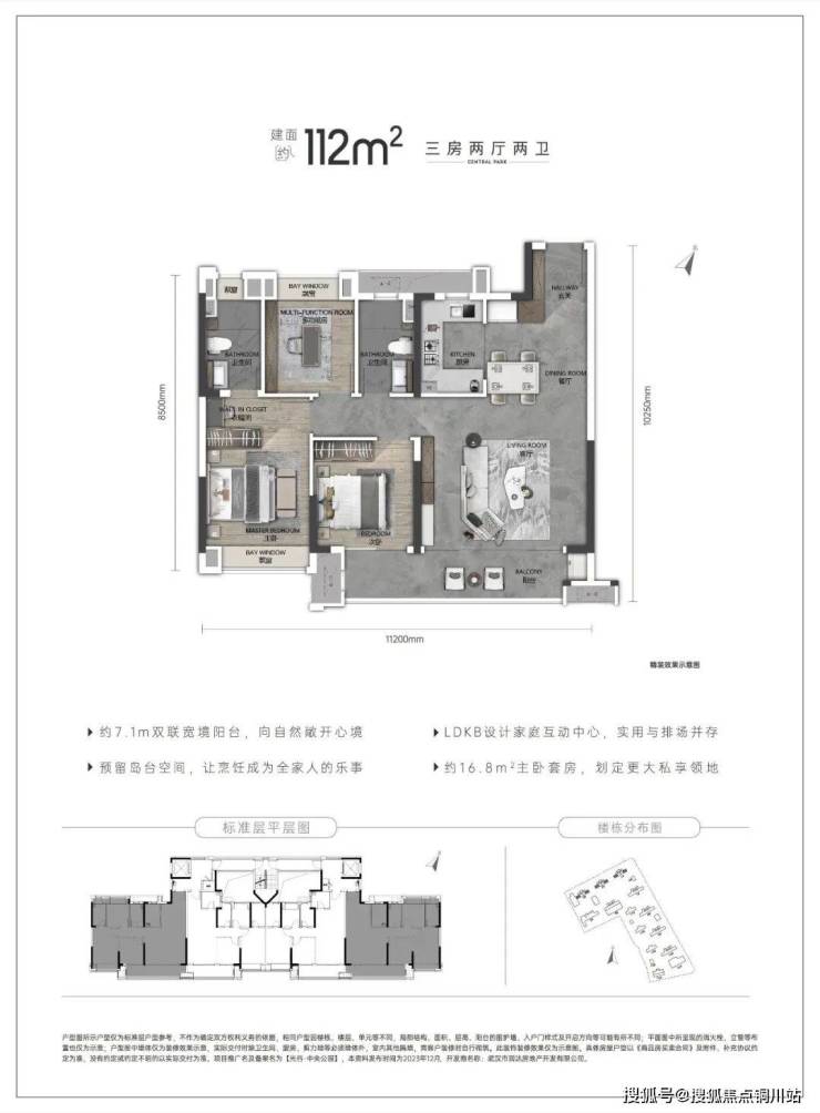 建面约112㎡三房两卫,边户设计,南北通透,南向约7.1米双阳台,跟豪宅尺度相当,客厅开间也非常的大,主卧还是套房式设计,生活舒适度拉满!