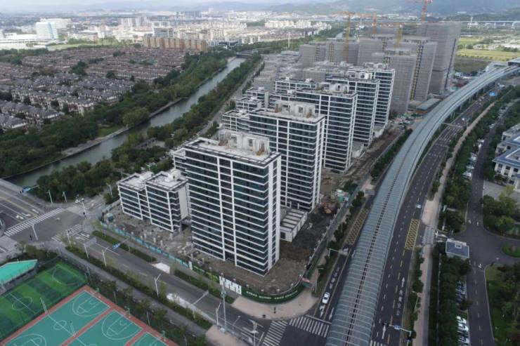 建筑设计:整体建筑风格现代时尚,住宅与商办塔楼相结合,其中商办塔楼 76.75 米,成为慈城的至高点,刷新了江北西片区的天际线。