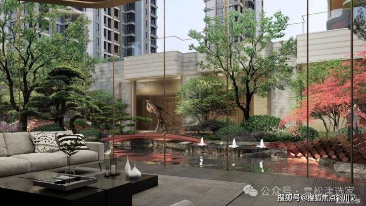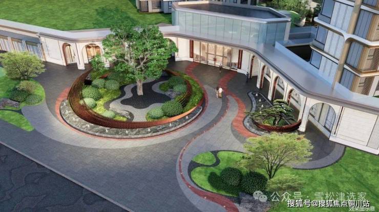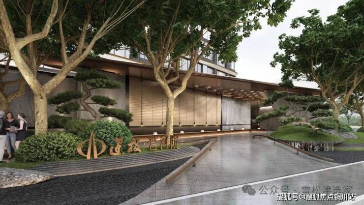 百年古树伫立门前,以金属线条勾勒鎏金门庭,大堂前庭以古树为核心,寓意凤栖梧桐,手工石材铺装地面,打造科技与自然共生的优雅格调,让归家的每一步皆成人文风景。