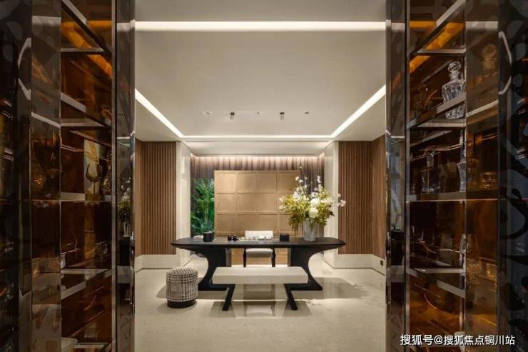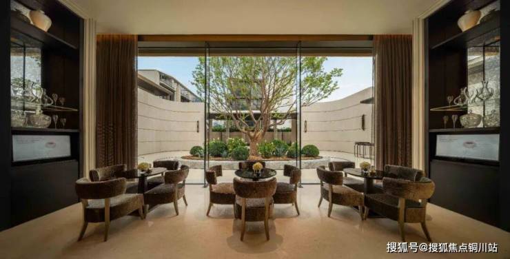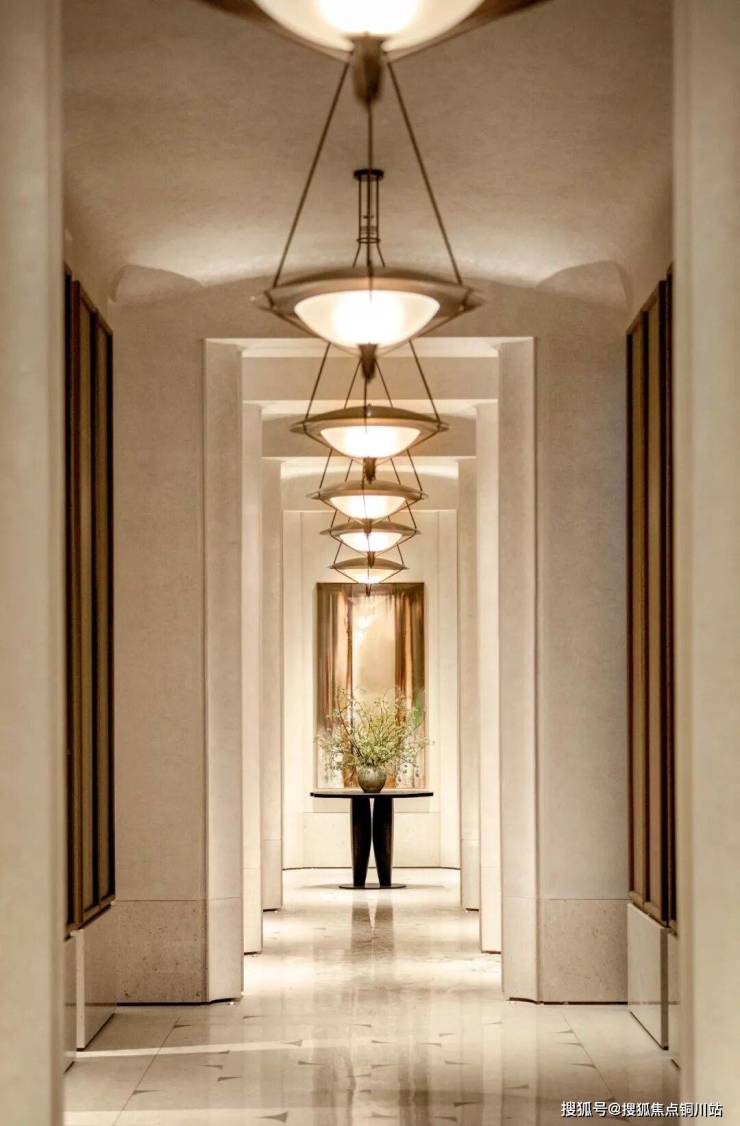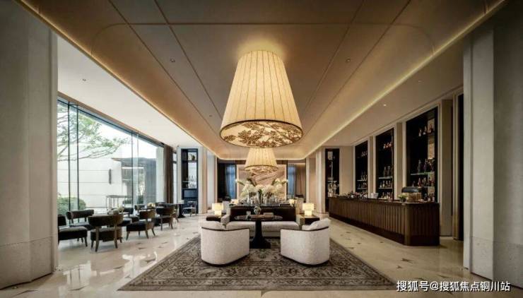 超级树冠” 幻化为延展渗透的灰空间,模糊室内外界限,营造流动的空间韵律。再观殿堂级入户大堂,8.5 米挑高尽显奢阔,以极致空间高度,致敬层峯生活格调。