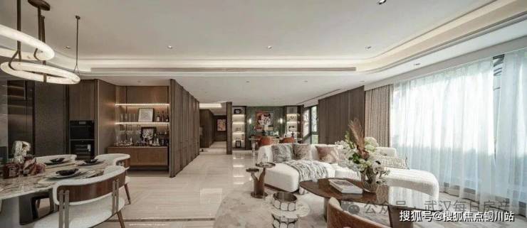 没人会拒绝这样的超大客厅与阳台相连形成“社交庭院”,以餐区和它相连
