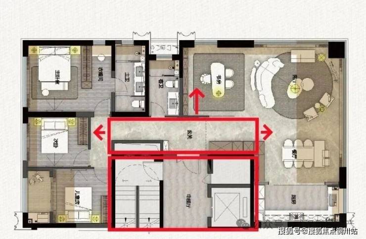 拓展后使用率能有约98%,比肩以往约200㎡大平层的居住体验