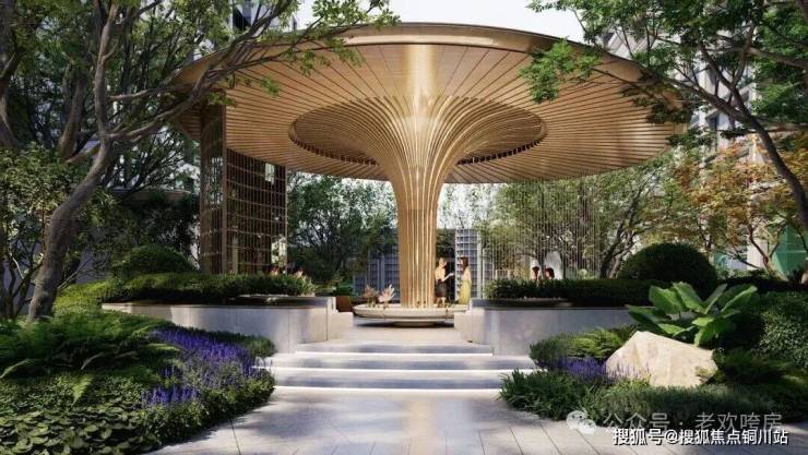 产品打造上,项目采用四代住宅设计,外立面汲取武昌古城“仪门”文化元素与砖拱特色,以现代公建化手法融合金属铝板、玻璃幕墙与天然石材,沿用经典三段式造型;景观方面,特邀园林专家团队,上海魏玛景观,从黄鹤楼、汉绣中提取设计灵感,打造五礼制归家礼仪。