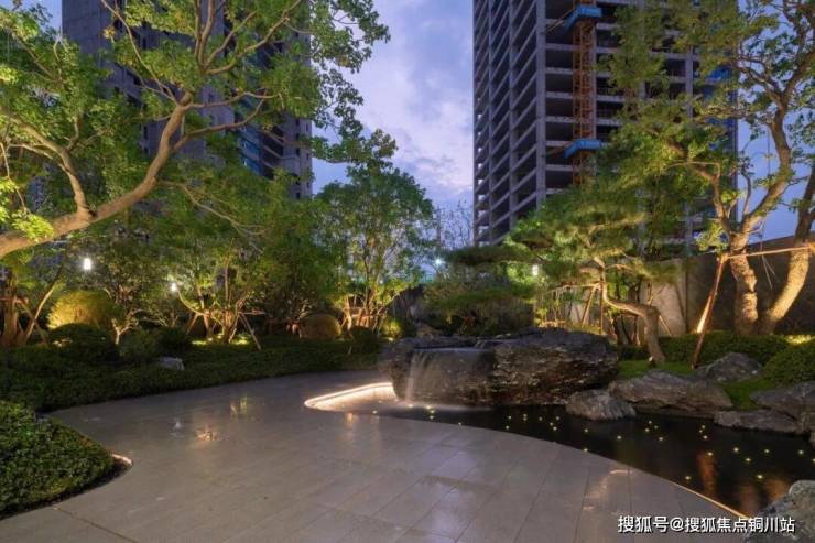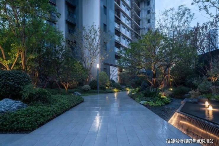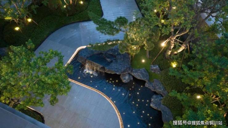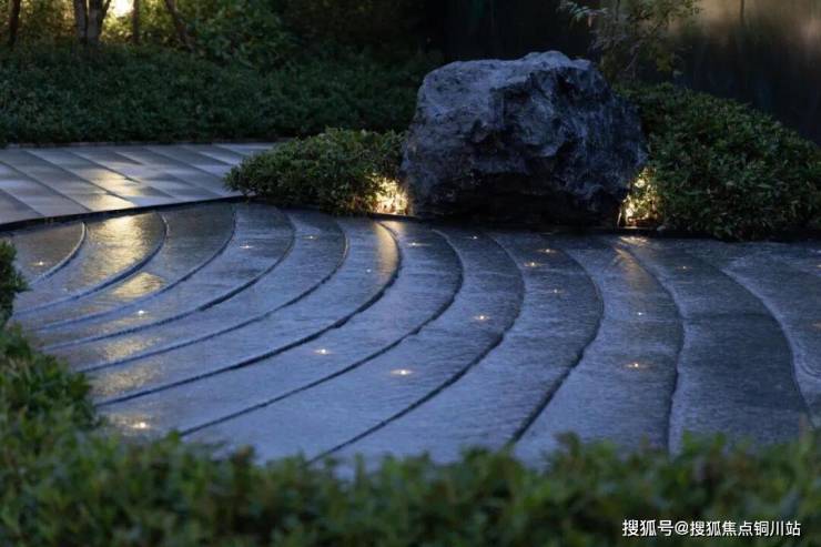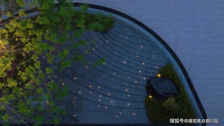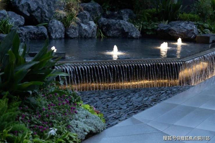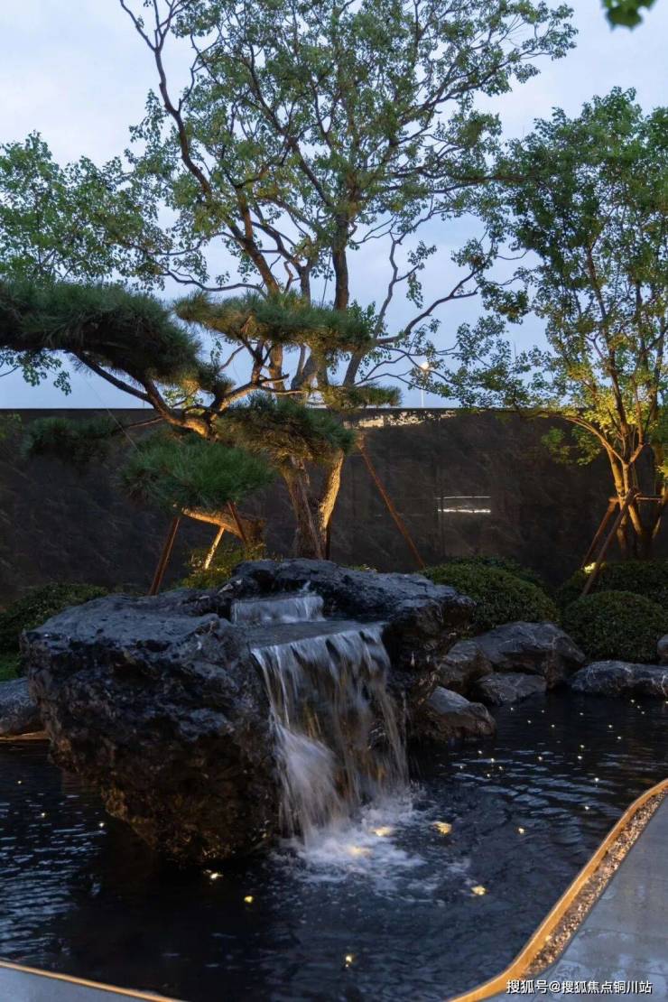 微风拂过,脚下是摇曳的树影与悠然的时光,身畔是潺涓水声,而水流之上的点点灯光指引去往的是家的方向。归家路上异形跌水的呈现是优雅形态与高精度施工的完美配合,需要克服诸多细节上的问题。如水流方向的调试、跌水面平整度的调试、水流量大小的控制等等,经过现场反复调试打磨,最终得以呈现出较好的落地效果。