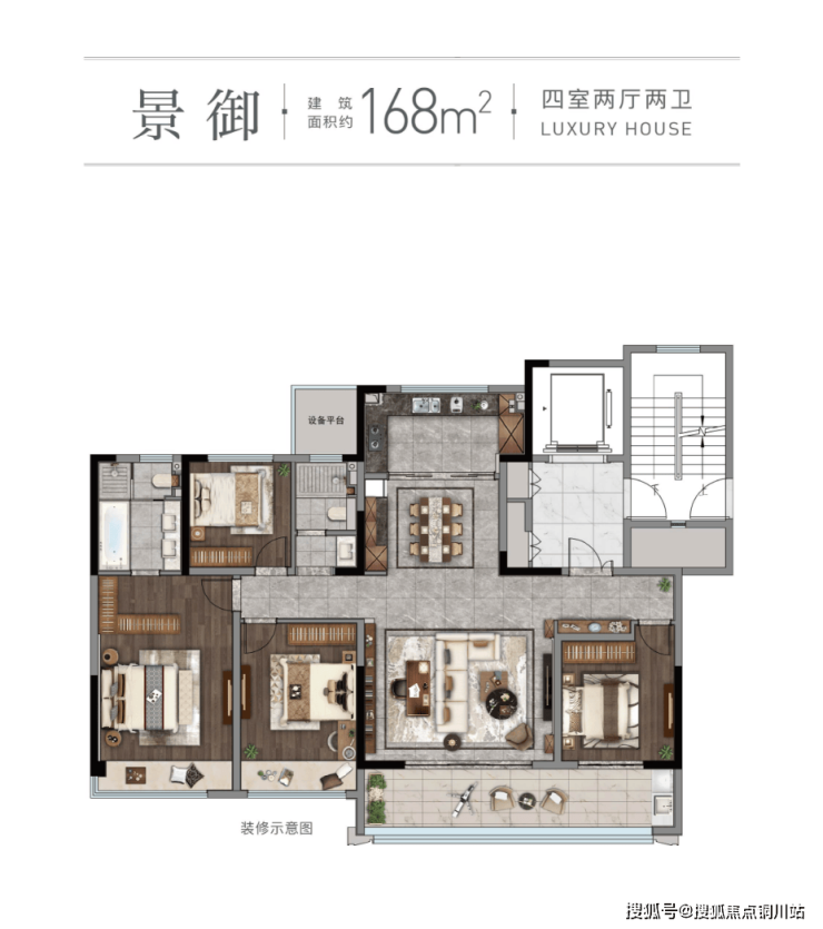 从具体户型设计上来看,建面约168㎡户型也是兼具居住舒适度和艺术设计感的王牌户型。