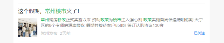 常州发布也对此进行了官方报道,购房新政正式实施以来资助政策为楼市注入强心剂,咨询量、交易量大幅提升,各大区域的补贴楼盘均呈现爆火的状态。