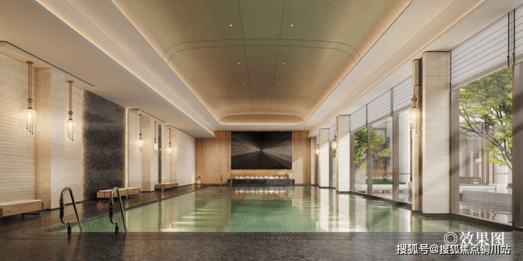 双层立体会所:约2500㎡地上地下复合空间,涵盖恒温泳池、私宴厅、SPA秘境、瑜伽健身房等多功能复合会所空间,搭配下沉庭院空间,将室外景观进一步延展,串联自然与社交。