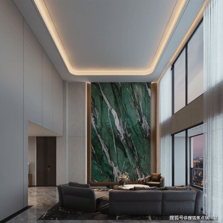 在产品打造上,兆地锦绣春秋积极响应高品质住宅的号召:住宅建筑的起居厅层高可适当挑高,在建筑面积约260㎡的户型中打造了挑高客厅,给予业主墅感的活力空间。