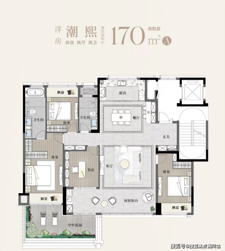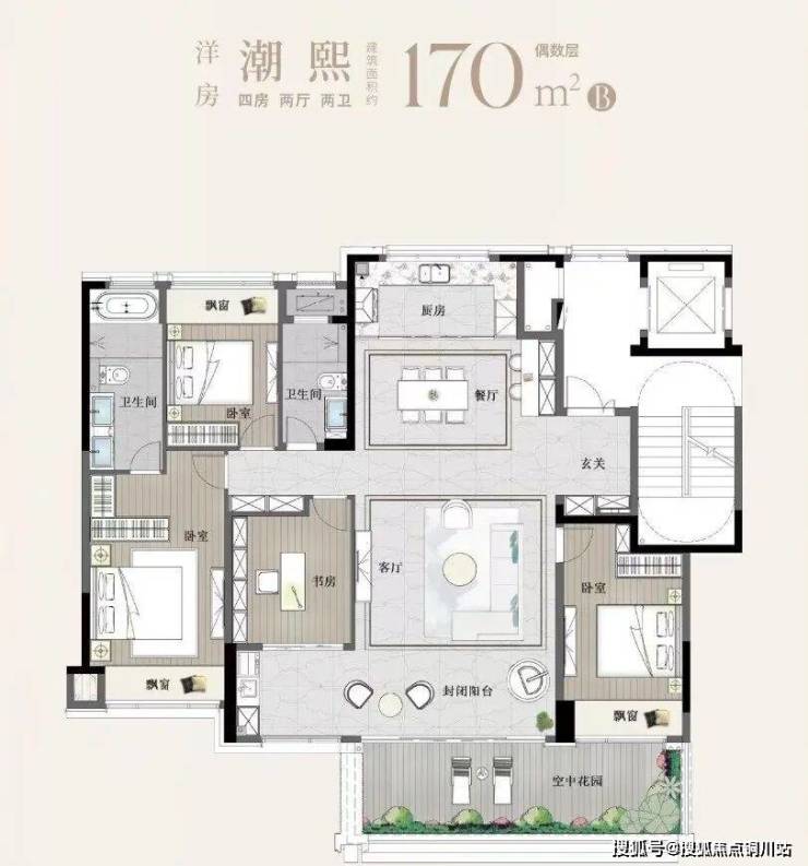 更别说将传统阳台升级为空中露台的四代宅代表特点,四代宅某种意义上是将大平层与别墅的结合体,让平层的整体性便捷性与院落的从容雅致兼收并蓄。