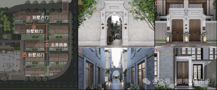 节点设计:根据人行归家动线,整理了别墅区六大节点,通过设计元素的序列营造强烈的仪式感,各节点以统一的设计语言营造更加整体协调的空间体验。