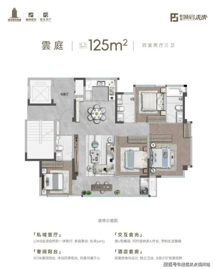 酒店式入户大门(50米弧形挑檐)、泗水归堂落客设计、约130米“城市会客厅”等,强调归家仪式感。
