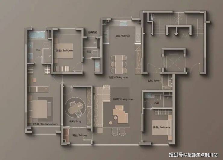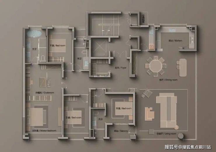 主卧套房:约4.4米开间与约8.2米进深,尺度非常震撼。