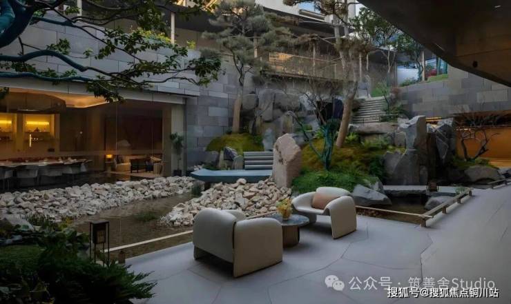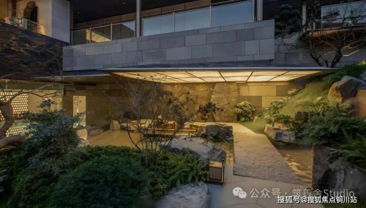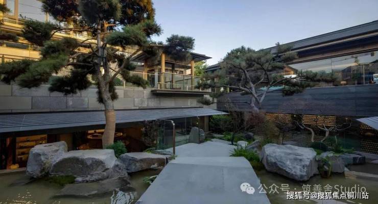 在园林景观设计上,深入挖掘苏州本土文化精髓,秉持“以水为脉、理水造园”的核心理念,精心构筑充满水乡韵味的景观序列。下沉庭院,一方隔绝尘嚣的静谧秘境,融汇苏州园林的雅致神韵,以收放自如的空间布局,构筑出步移景异的游园雅趣。虬枝松树尽显风骨,错落景石沉淀岁月,于静默中诉说时光故事。循径而下,绿意葱茏,光影斑驳,清泉潺潺,于自然怀抱中邂逅一份宁静悠然。