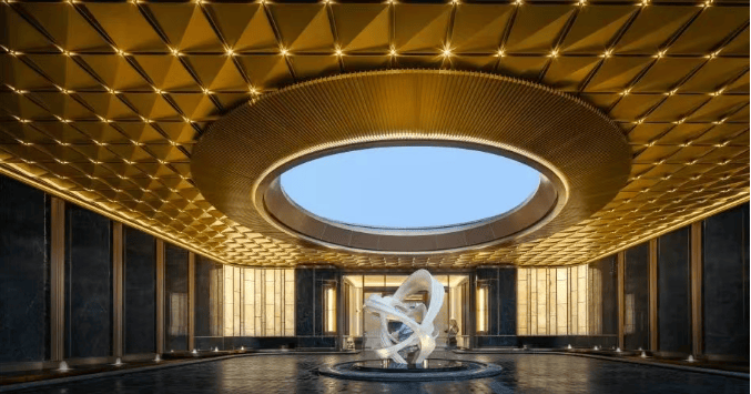 建筑设计:采用绿城新一代 “无边框曲面屏” 设计,如玻璃盒子般轻盈通透,以远山近湖为灵感,大面积玻璃窗搭配金属质感线条,形成无界天幕建筑群落。