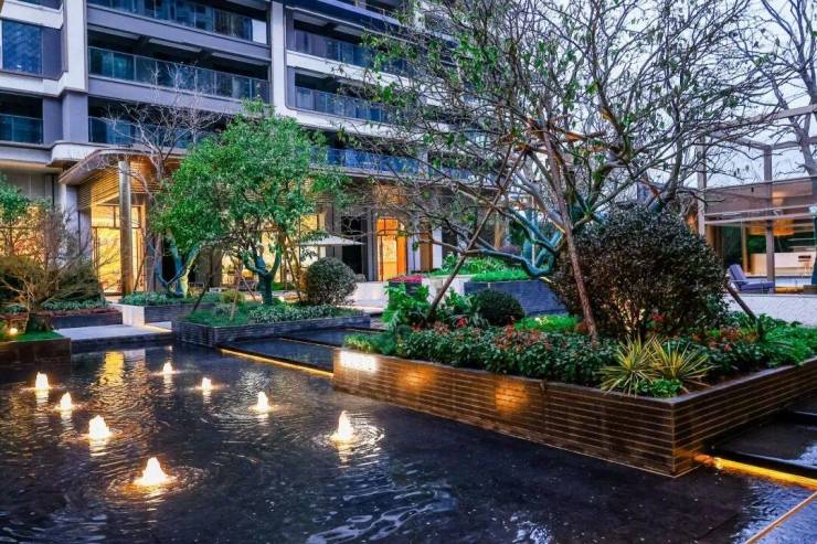 7米挑高的连廊空间、奢石景墙、下沉景观、乌桕和香橼树,这些改善社区的要素,现在都集合在他一个项目之上