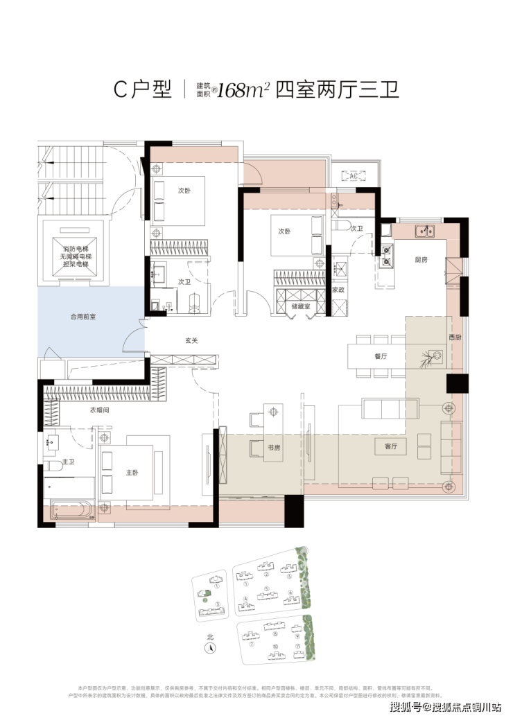 ②168m²户型:四房两厅三卫