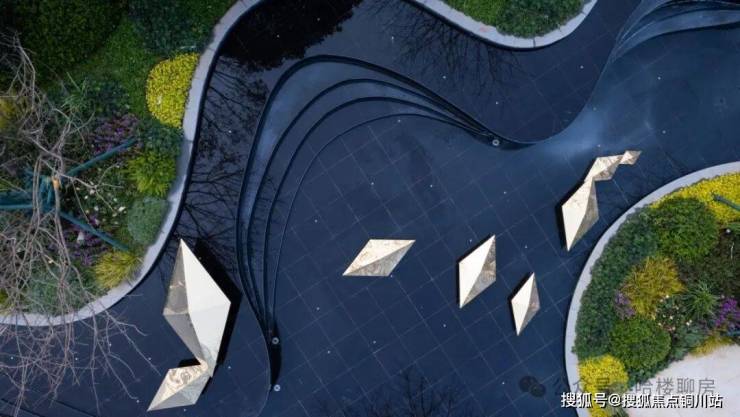 以中央景观轴为核心,通过植物高低差营造出立体景观效果。