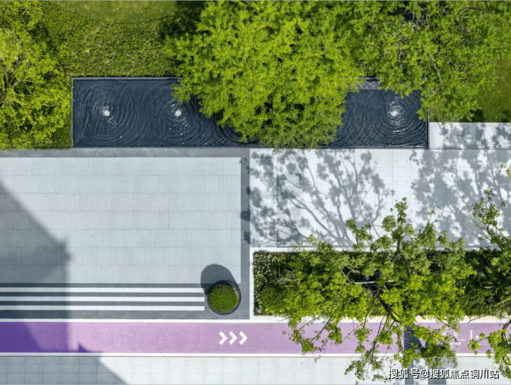 ➤三进小区内部,即示范区北侧,这里种植了香樟、乌桕、龟甲冬青、瓜子黄杨等植物,树下涌动的泉水如同跳动的精灵,在阳光的照耀下熠熠生辉。(注:示范区目前北侧景观这边种植的绿植是展示效果,实际交付这边景观以乔木、地被和草坪为主)