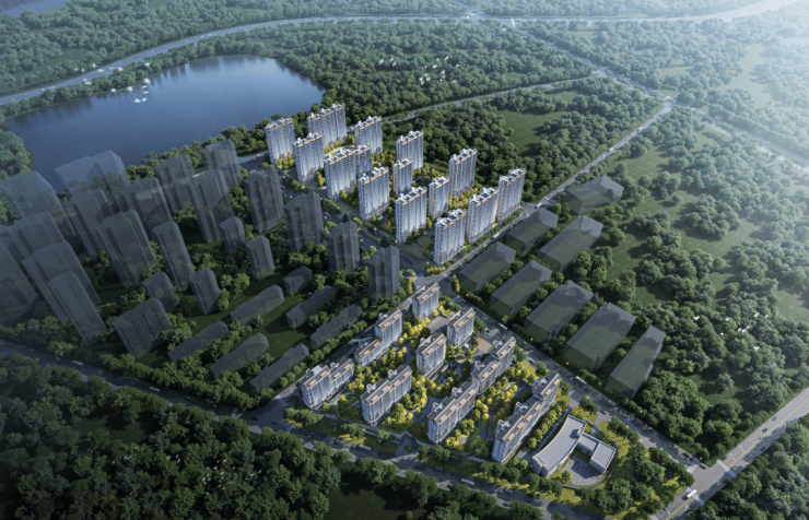 地上计容建面约99012㎡,容积率约2.3,共15栋楼,规划13-18层到顶的小高层,共990户。