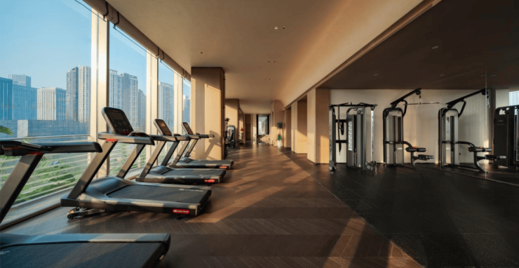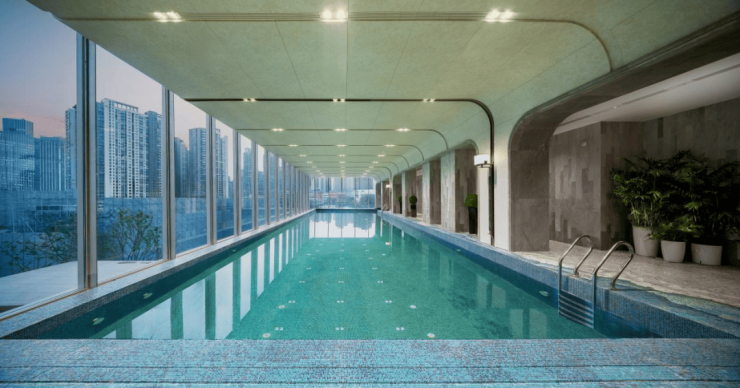 在这里,配备国际知名器材的健身区与恒温泳池被巧妙设计为“可视邻里”。家长在跑步机上挥洒汗水时,视线可无碍抵达一旁的儿童戏水区。运动与守护不再彼此割裂,而是一种安心的同频共振。这不仅是陪伴,更是高质量的家庭关系链接。