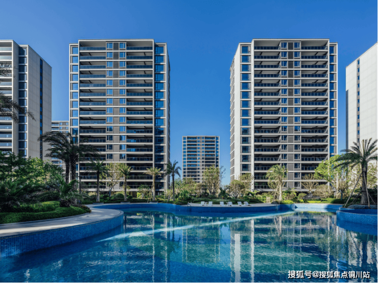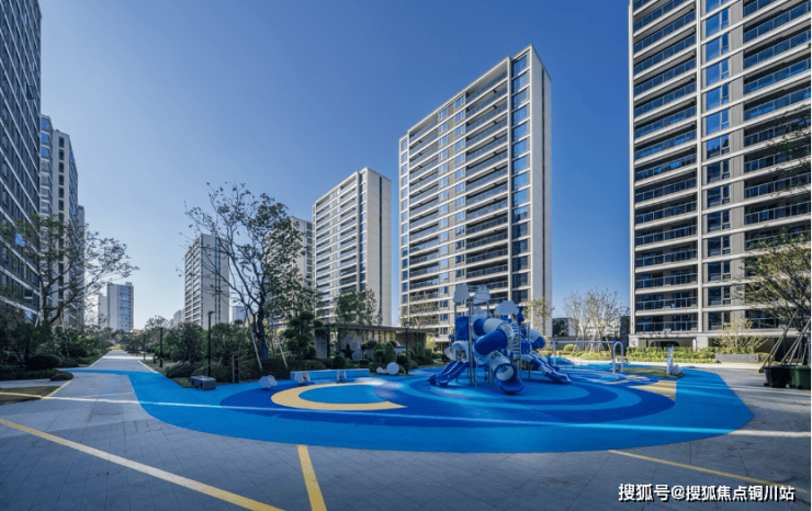 曾经惊艳效果图的场景,如今已全然实景呈现。宽约60 米的景观中轴以整洁步道与错落组团,绘就简约雅致的冬日画卷;Tiffany 蓝双泳池池畔线条与周边植被仍勾勒出精致风景;阳光大草坪上,落叶轻铺成天然画布,云朵乐园的设施已然就绪,只待孩子们的笑声唤醒冬日活力。