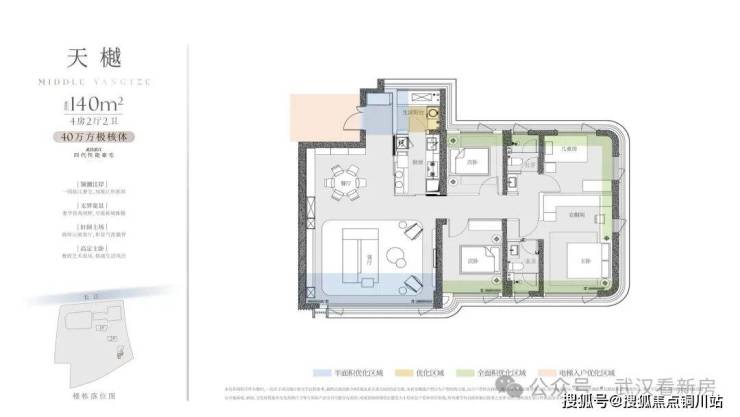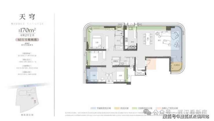 户型格局方正,结合四代住宅设计,空间利用率更高,兼顾居家自住、改善居住、观景需求,适合追求内环地段、一线江景的改善家庭。