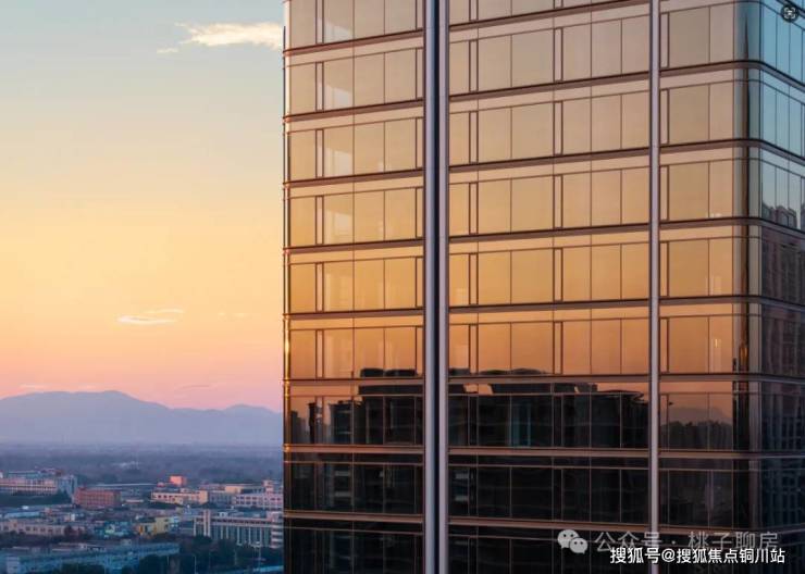 运宸中心以“金玉镶嵌”为灵感,甄选古铜色铝板、大面积中空LOW-E玻璃等型材,打造近百米高的公建化地标建筑群,筑就城北的金色坐标。