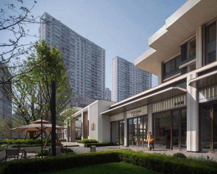 打破了传统商业空间的封闭感,让咖啡香、绿植气息与轻柔的市集对话声自然流淌至院落,为归家路径注入烟火气与生活温度。