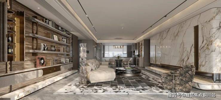 在涧山观奕的实景展示区,千吨原石的私园、无界自然水院、风雨连廊、叠瀑流水、珍稀乔木、18米玻璃幕墙的水吧、健身空间与儿童书房,无界交融,大隐于市。