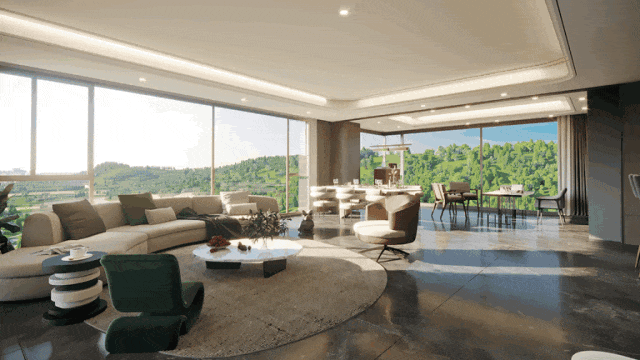 此等场景,意味着无论深处该户型内的任何一处,都能有极好的视觉效果。