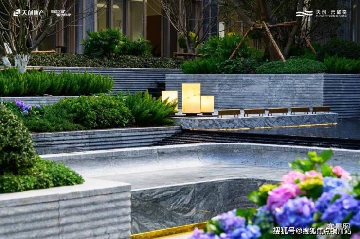 园林设计溯源“镜花水院”的设计理念,以水为脉,打造大面积镜面水景,以“三重五景”为脉络,层层递进,步移景异,增强归家动线的层次感与体验感。让归家之路,变成一场穿越花园的诗意旅行。
