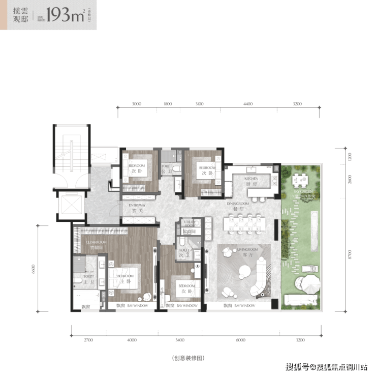 193平的户型则是对标230左右的大平层,动静分区,大边厅设计,边厅外侧是一个40多平的空中庭院,类似琼华九璋的退台设计,单看户型图就非常让人心动。