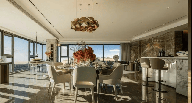 建筑设计:特邀 GOA、MDO、澜道佑澜、DIA、CCD 世界级大师团队执笔,社区大门处有 15 块意大利整石雕琢的横向衍生界面,以波浪形玻璃幕墙搭配大块石材,形成 “千帆归港” 入户仪式5。