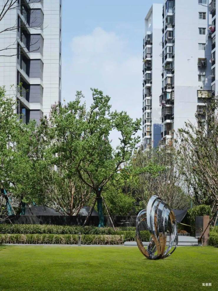 更难得的是同步兑现的魄力:代建市政公园与住宅项目同频推进,一期实景园林示范区已完美呈现,盛夏时节,绿意葱茏。