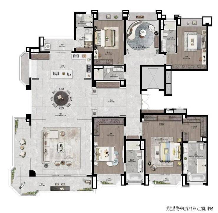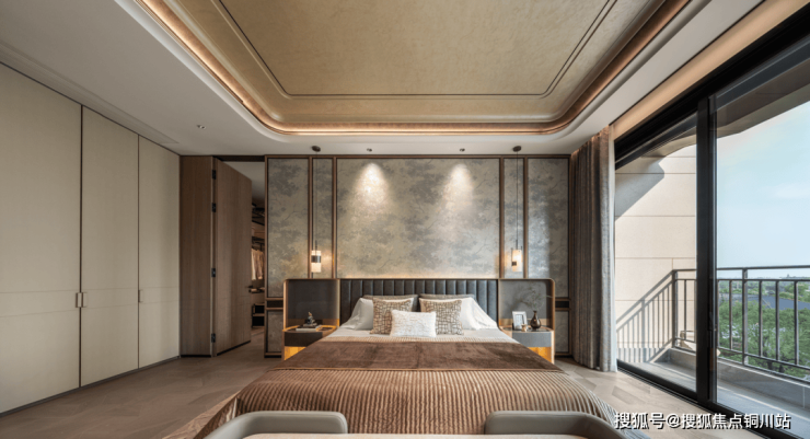 主卧采用套房设计,面积可达到50㎡左右,集睡眠区、衣帽间、豪华卫浴、休闲阳台于一体,真正实现“主人层专属领地”。