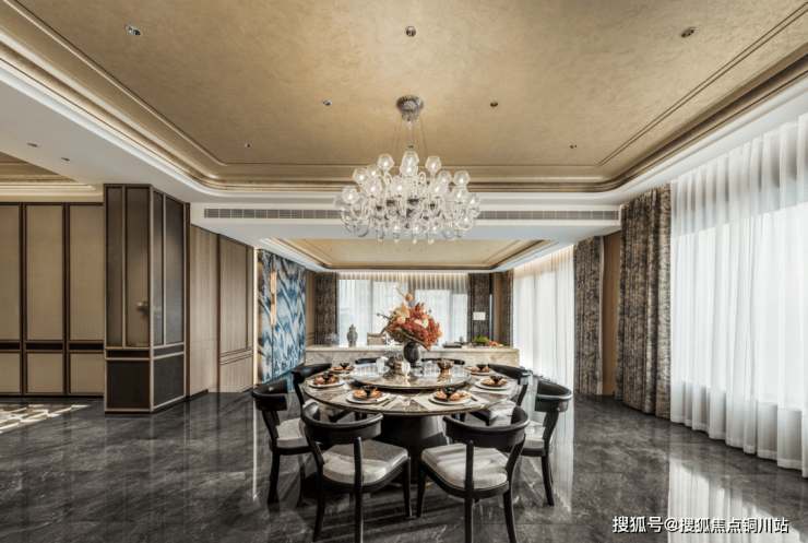 餐厅可轻松容纳多人圆桌,适合家庭聚会或商务宴请,中式厨房封闭防油烟,西式岛台开放式设计,满足高端烹饪需求。