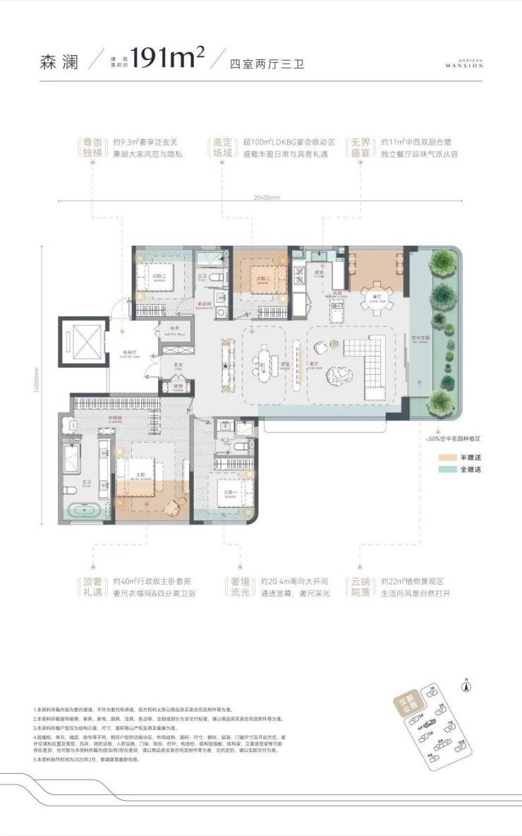 建面约191㎡四房两厅三卫,高定改善标杆,得房率最高约109%,也是大平层×创新四代宅范本。这个户型整个项目只有46套,就6号楼一栋楼,还是楼王的位置,十分稀缺。
