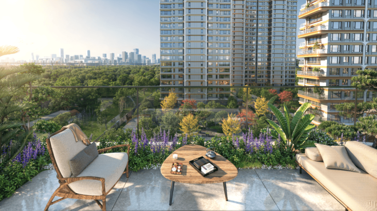 隐私重构:"背向双梯入户+错层露台"设计,露台50%空间绿植交付,在高层住宅中复刻独栋别墅的私密体验,让社交距离与亲密关系各得其所。