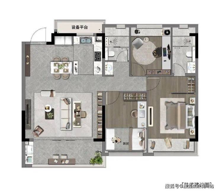 四房两厅两卫,宽幕视野,打造“都会取景框”般的滨江奢宅体验。