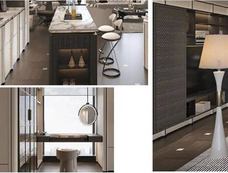 还有无处不在的皮革编织与灰阶木皮编织定制手法,既重塑高奢美学的当代形态,更赋予居所独一无二的个性与灵魂……
