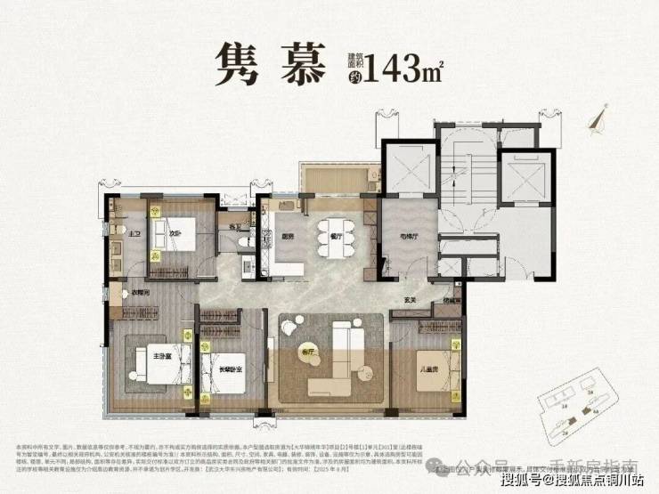 这是建面约143㎡的四房洋房边户