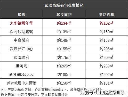 因为整个武汉市,户均面积约150㎡以上的高端豪宅,算上大华锦绣年华就只有8个