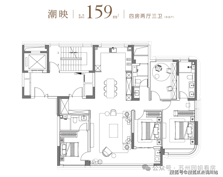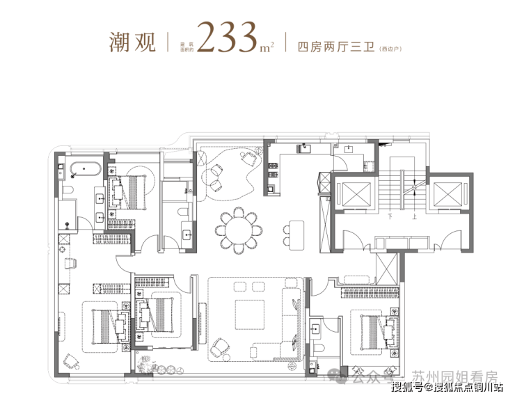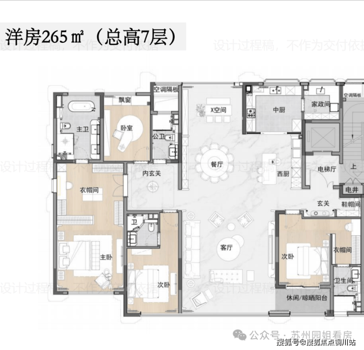 约265㎡,4房4卫,一梯一户。
